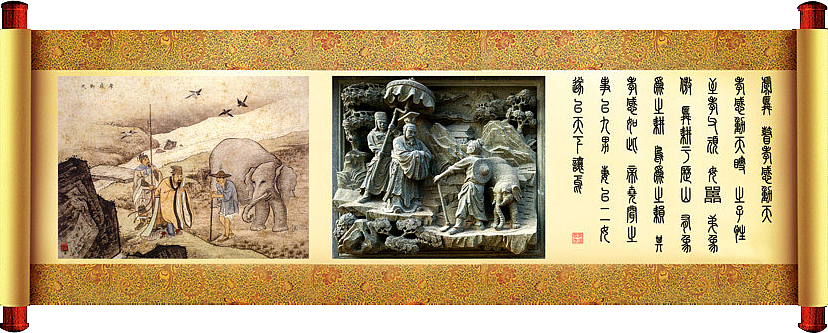 虞舜,是瞽瞍的儿子。为人极为孝顺。父亲愚钝蛮横,后母愚蠢顽固,异母弟弟傲慢无礼。虞舜在历山耕作,有大象为他耕作,百鸟为他锄草。这是他的孝心感动出来的结果。尧帝听说了虞舜的故事后,派来许多男丁帮他,并把两个女儿娥皇和女英嫁给他,最后还把天下给了虞舜。